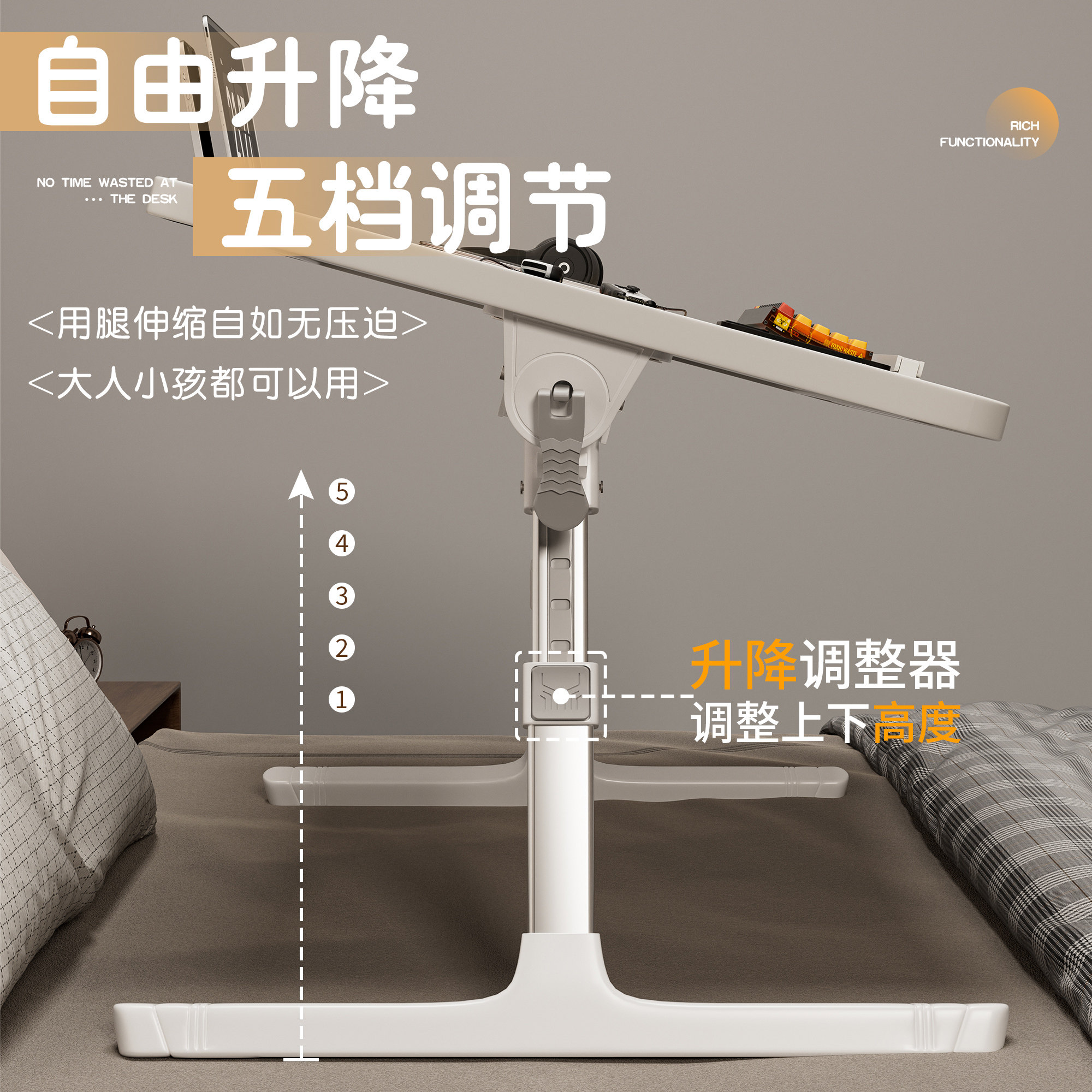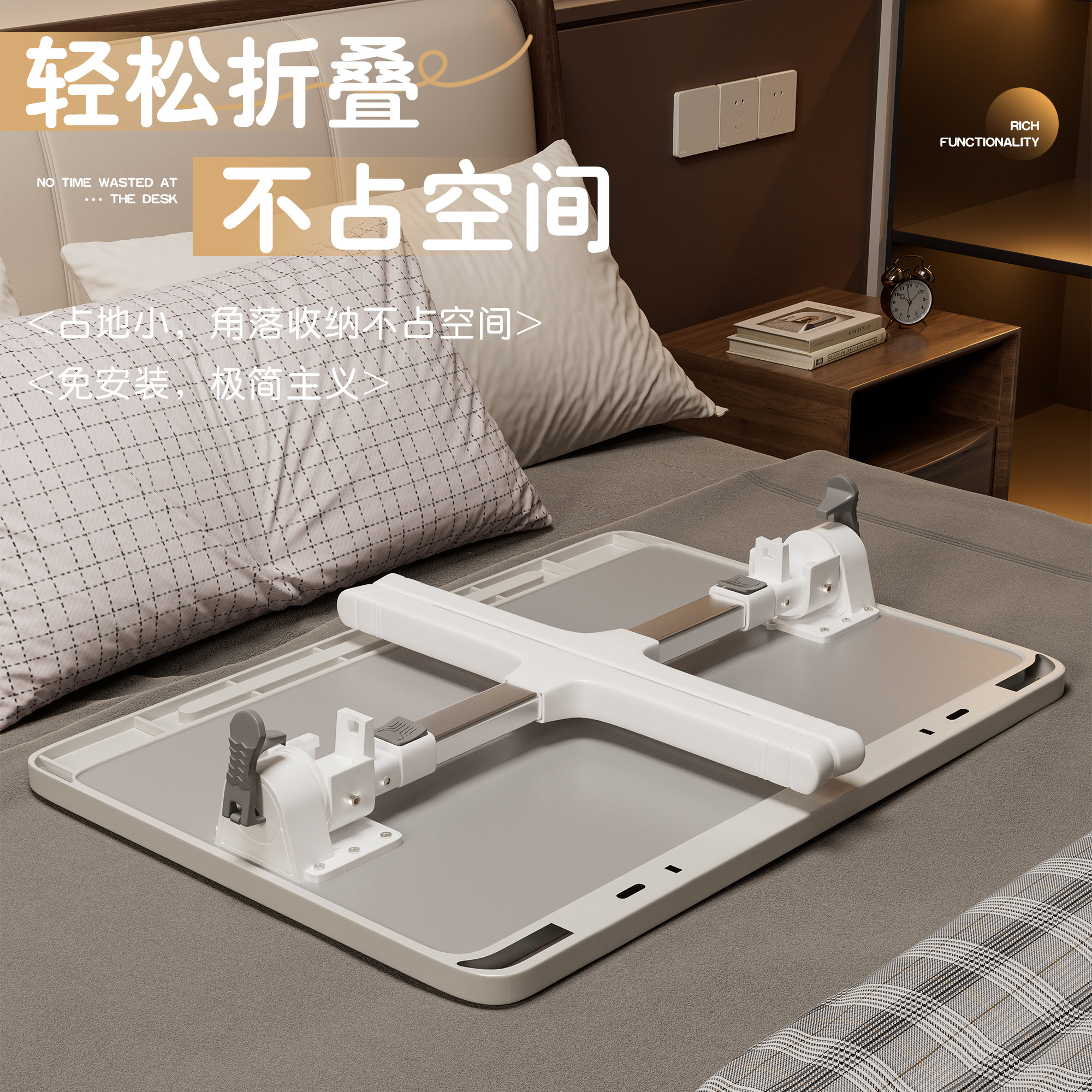 可升降折叠床上小桌子简约宿舍学生写字床上书桌学习调节高度支架家用卧室坐地飘窗懒人笔记本电脑办公小桌板