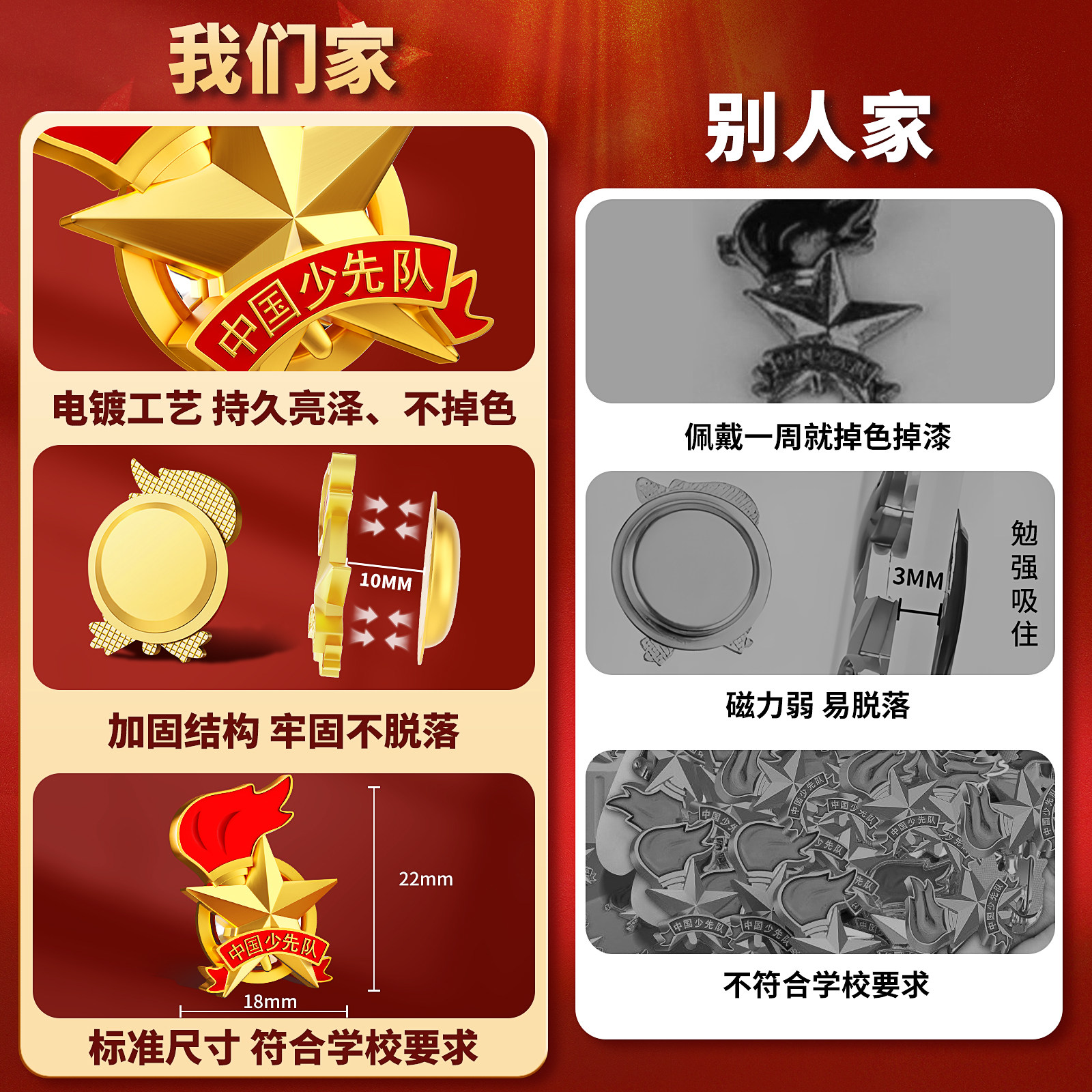 少先队队徽小学生少先队员正版标准款磁吸式安全别针款校徽强磁铁磁扣中国少年队先锋队徽章五角星胸章不褪色