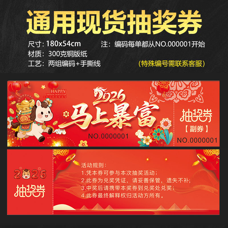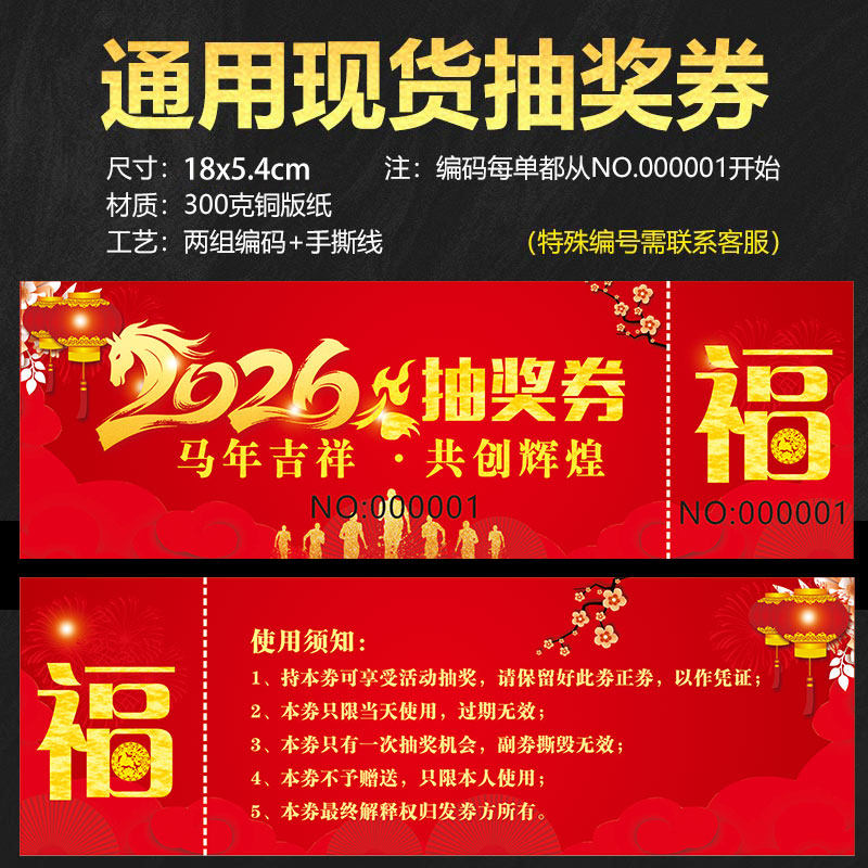 马年抽奖券定制公司年会活动通用抽奖卷正副券创意设计制作宣传邀请入场券订做个性印刷入场卷婚礼抽奖券