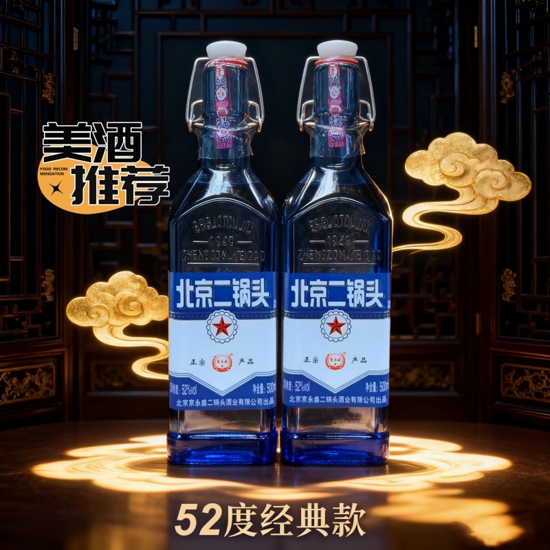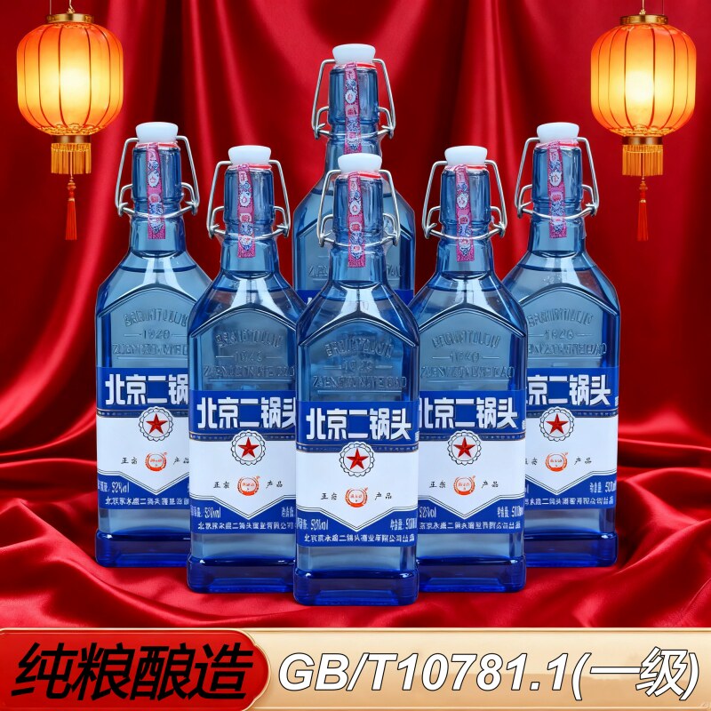 红星二锅头蓝瓶绵柔8纯粮53度750ml*6瓶整箱清香型白酒纯粮口粮酒