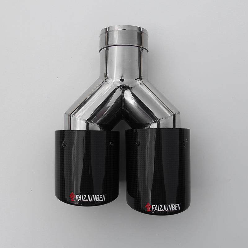 faizjunben碳纤维尾喉汽车排气管改装不锈钢罩嘴双管跨境消声卷边