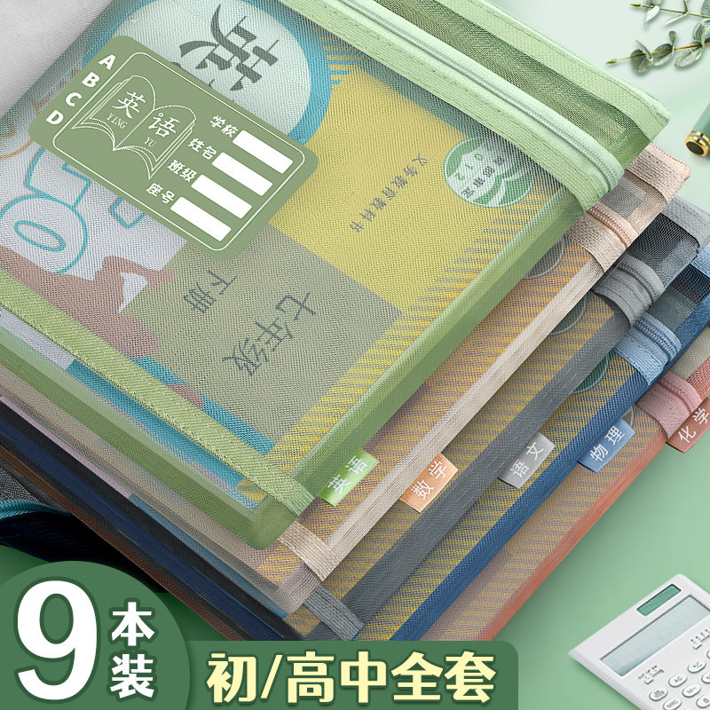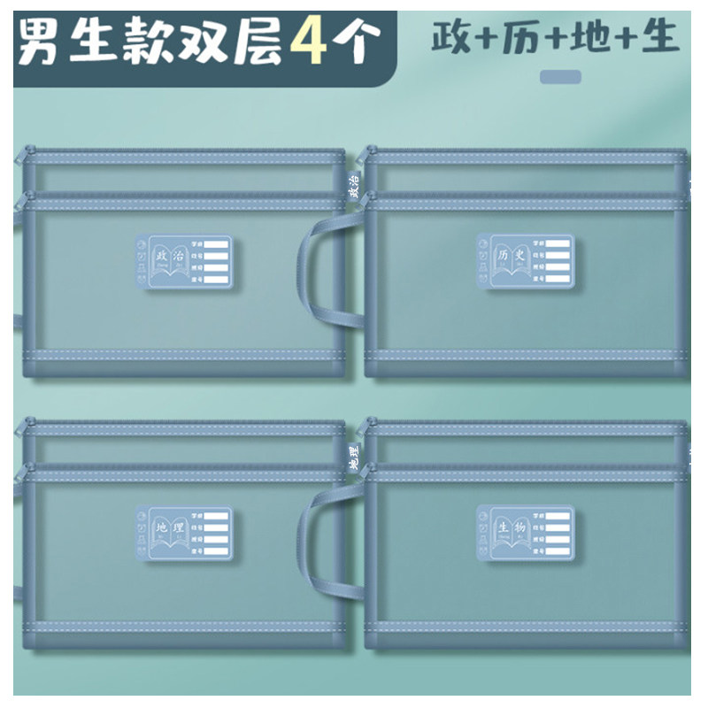 新品初中生学科科目分类袋分科z文件袋拉炼式双层大容量高中生透