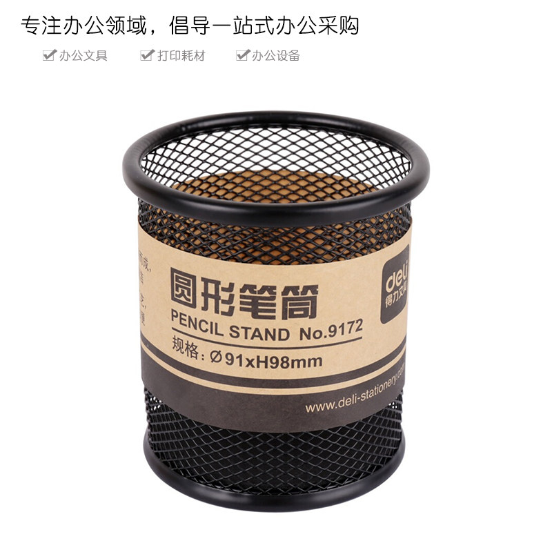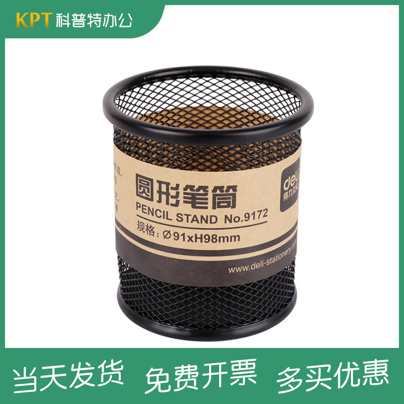 得力9172笔筒圆形金属网纹笔插办公文具商务笔类收纳简约时尚铁丝网铁艺黑色简约
