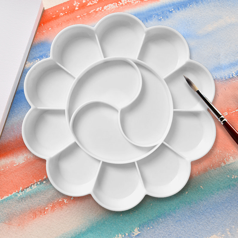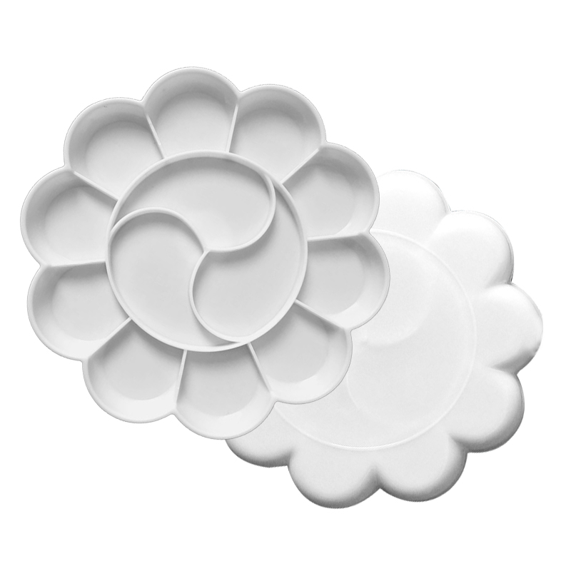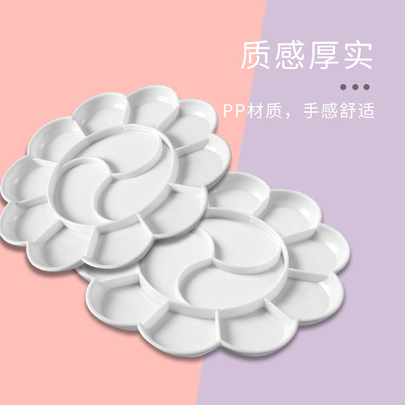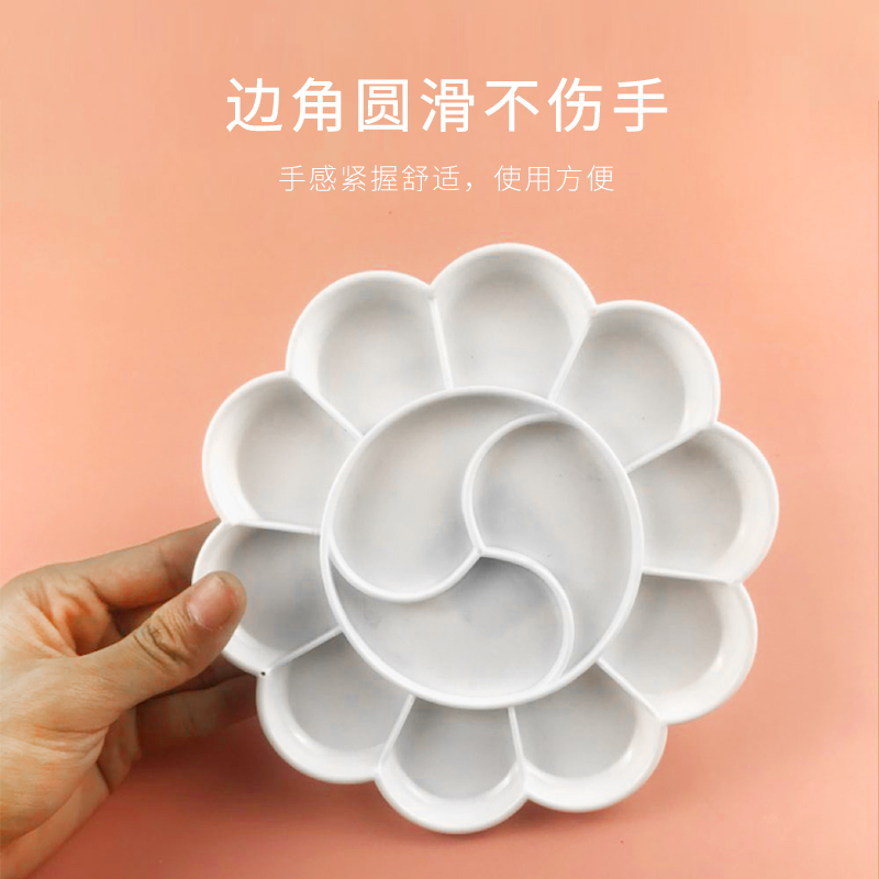 梅花形颜料调色盘碟13格加厚塑料调色盒绘画水粉颜料水彩丙烯国画调色板学生美术用圆形分格调色碟大号梅花盘