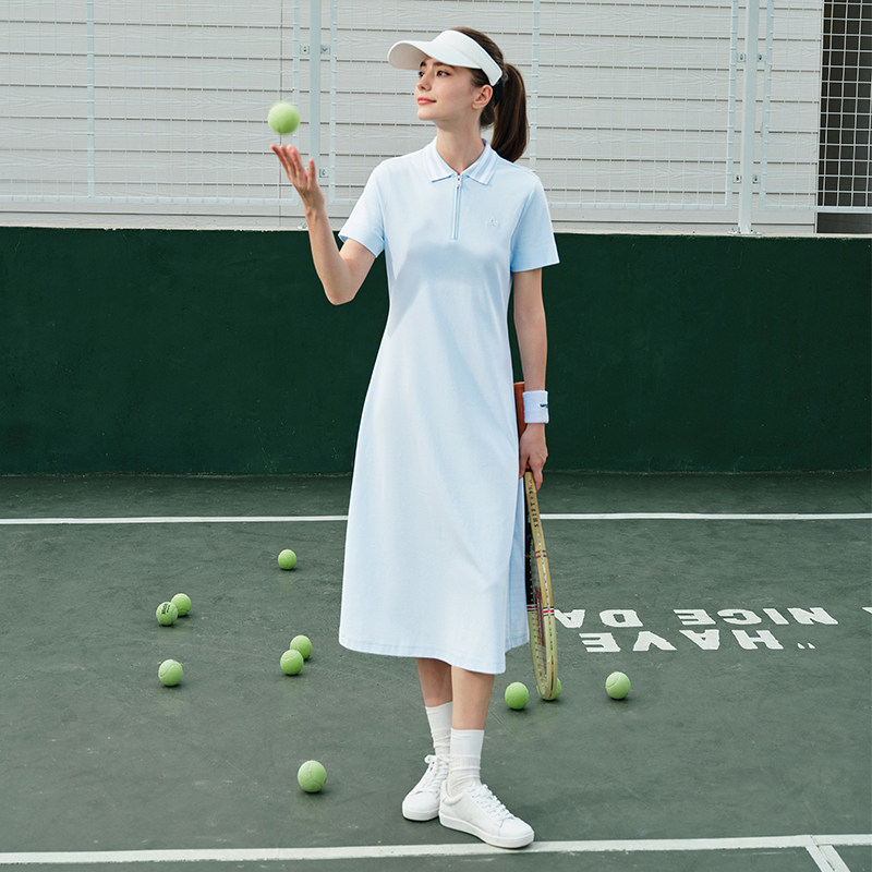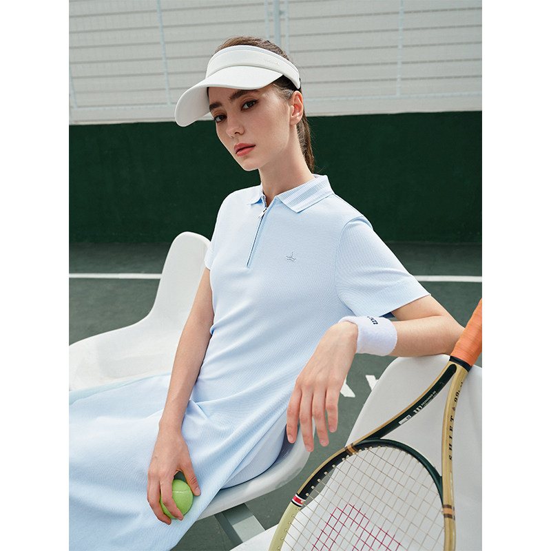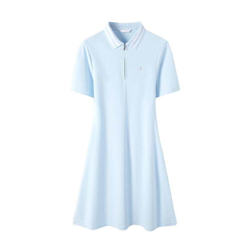 Navigare意大利小帆船夏季蓝色短袖polo连衣裙女士半拉链裙子