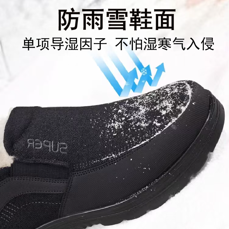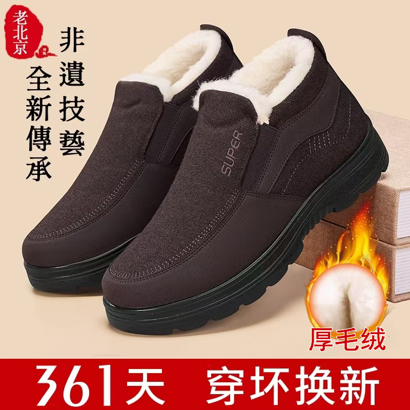 老北京布鞋男冬季加绒加厚防滑2025新款老年老人毛绒厚底爸爸棉鞋
