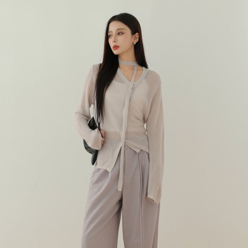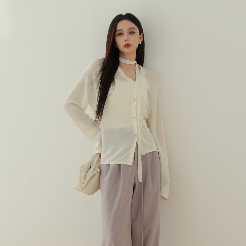 AIRIQI秋季新款宽松轻薄慵懒风外搭长袖针织短款开衫AH43KS072