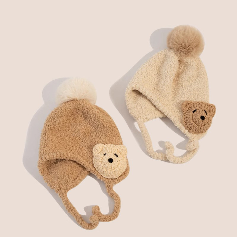 Classy key新加坡设计师联名款冬儿童帽子小熊套头帽珊瑚绒毛绒帽