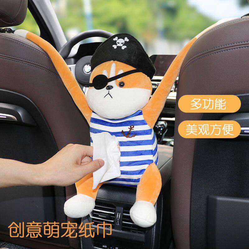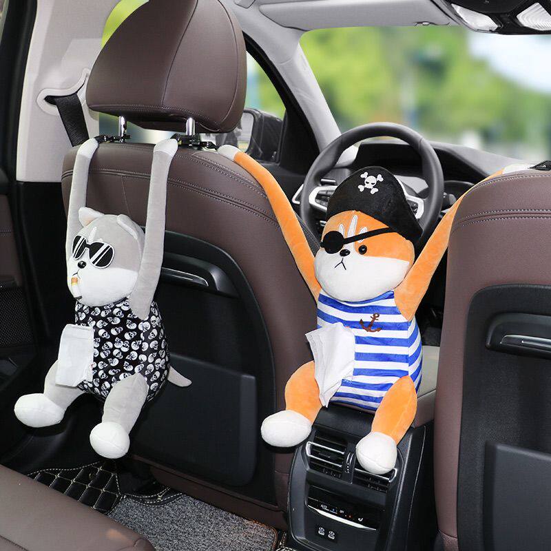 车载纸巾盒创意可爱小狗装饰抽纸盒车内挂式汽车纸巾袋车用纸抽盒