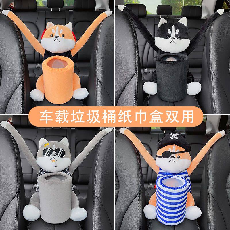 创意车载纸巾盒汽车哈士奇扶手箱抽纸盒挂式可爱车内装饰用品大全