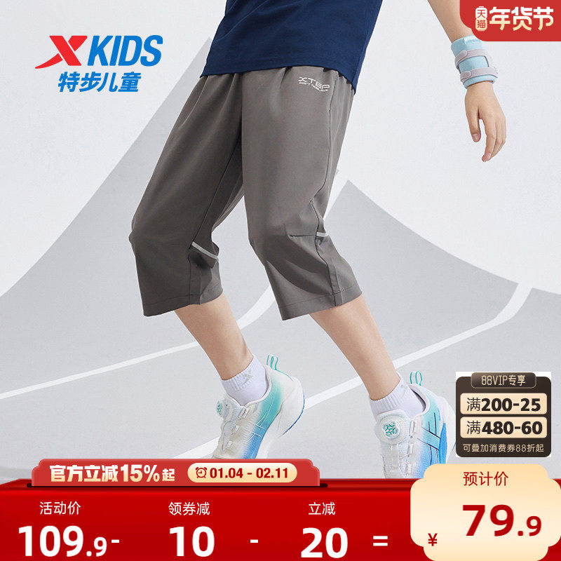 特步童装儿童速干七分裤夏季新款男童中裤大童透气跑步裤运动裤子