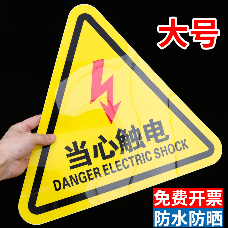 有电危险警示贴纸当心小心触电配电箱标识贴充电桩机械设备三角安全用电警告标示闪电高压危险自粘提示牌定制