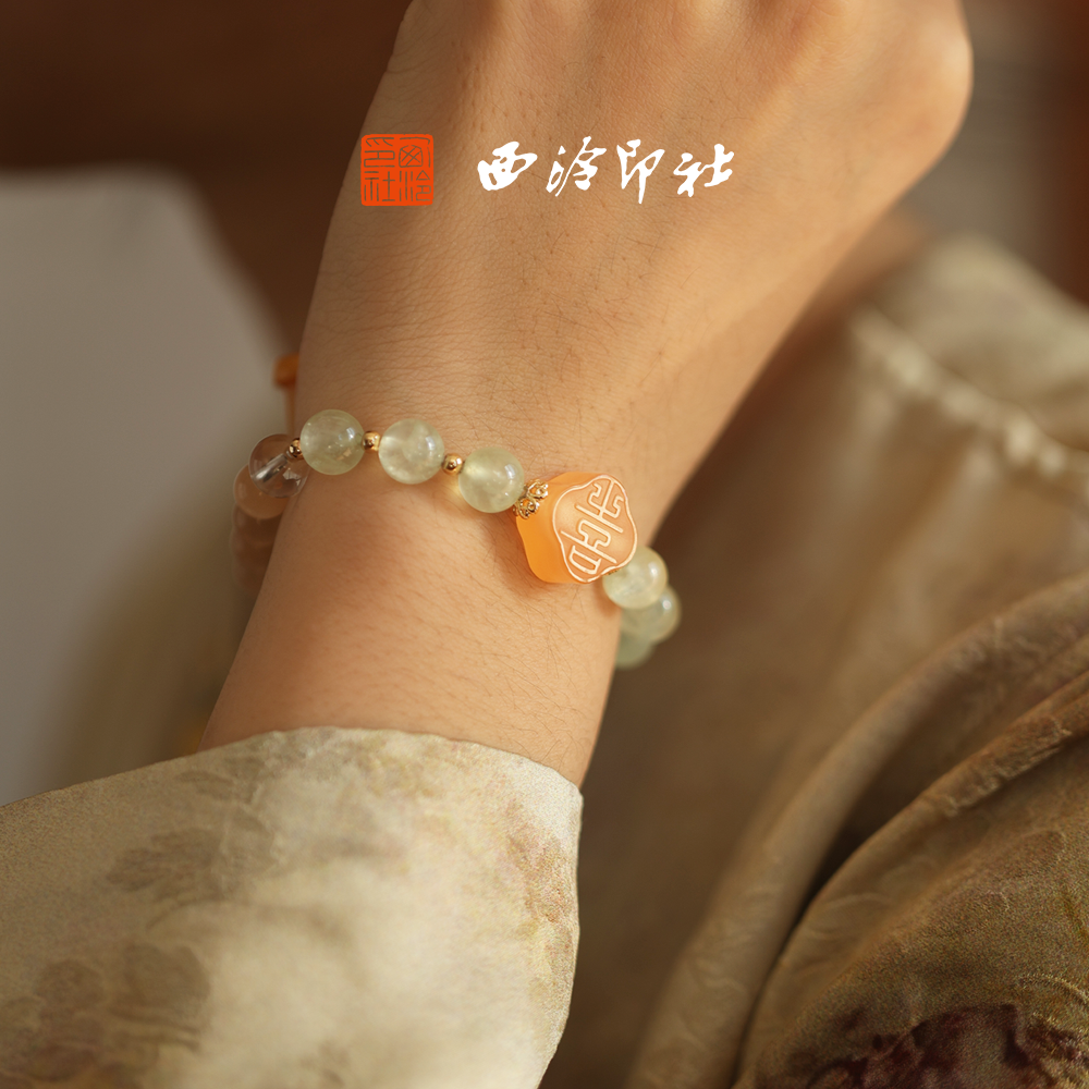 西泠印社海棠系列国潮印章手串桃花粉手链穿戴过年春节闺蜜国风生日情侣手链生日礼物企业定制伴手礼新年送礼