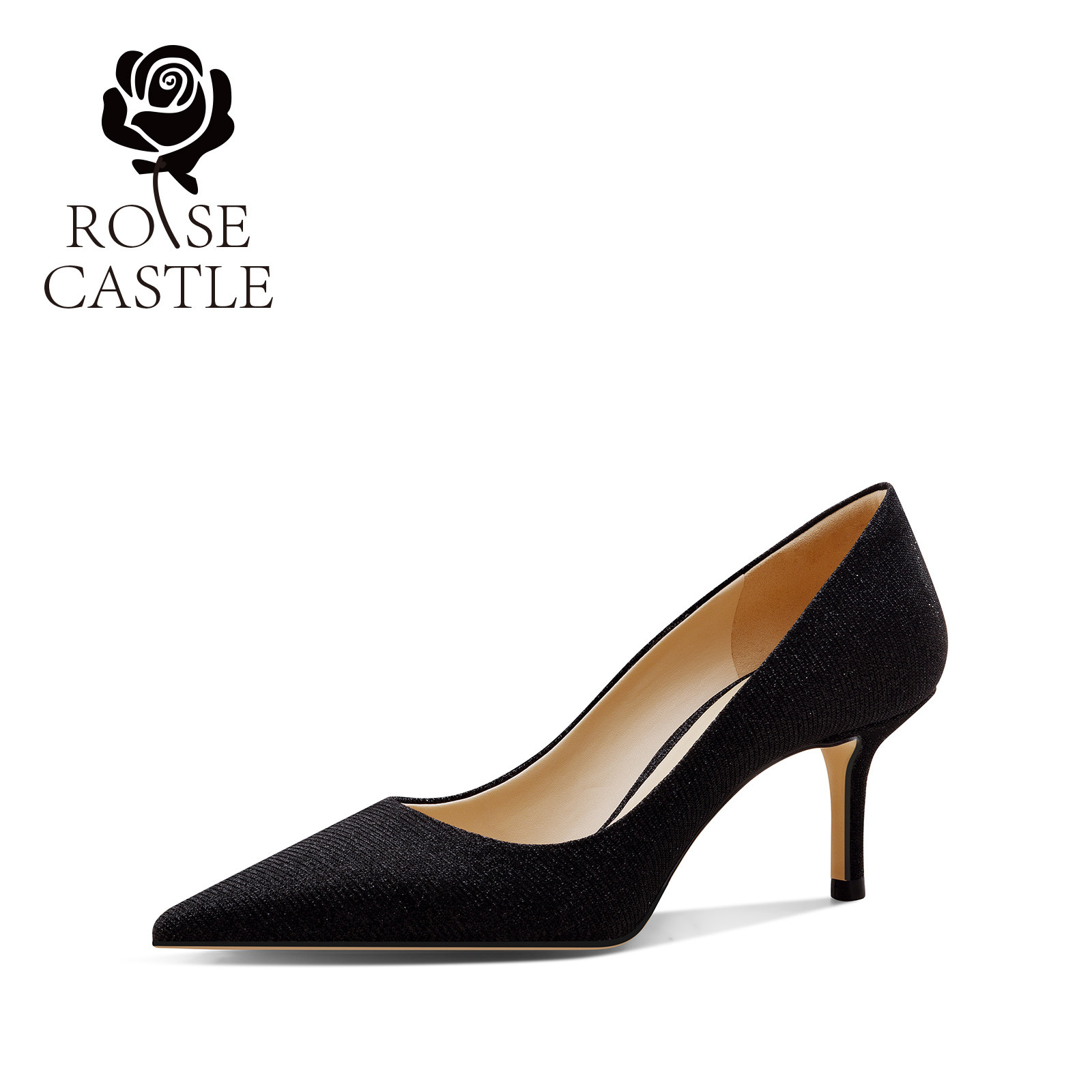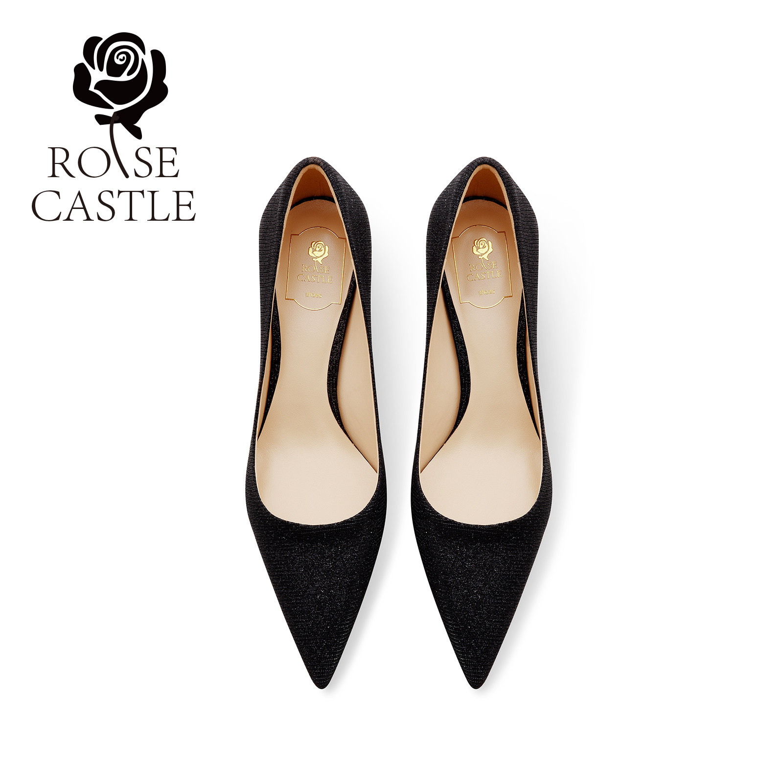 rosecastle黑色高跟女鞋日常通勤单鞋女婚鞋水晶渐变气质细高跟鞋