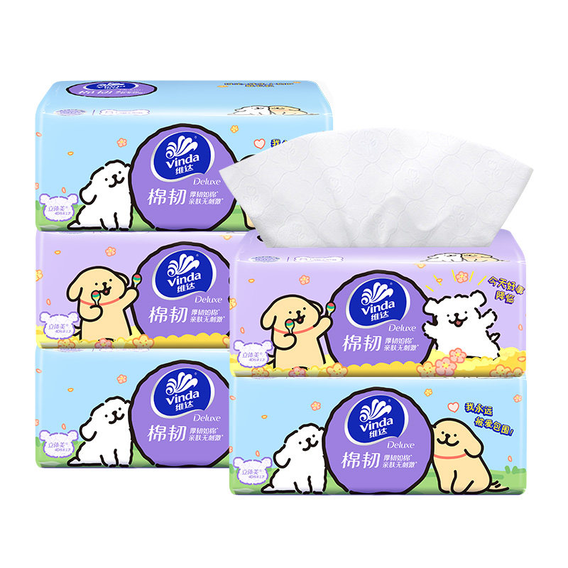 维达抽纸90抽棉韧纸巾联名款线条小狗箱装家庭实惠装餐巾纸卫生纸