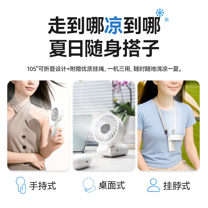 可折叠手持风扇丨可手持/桌面/挂脖丨13小时