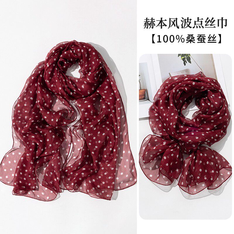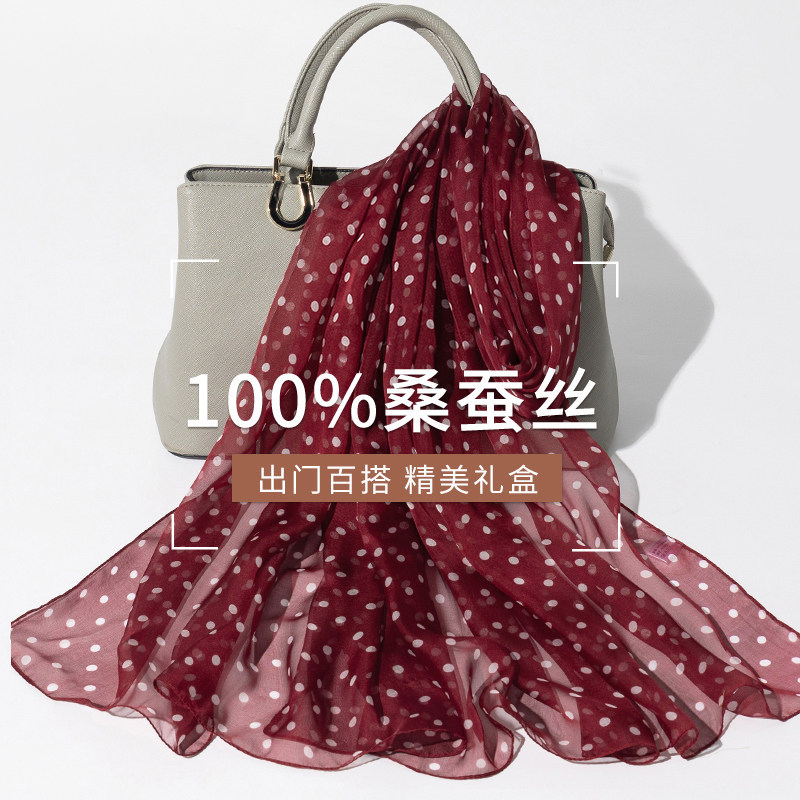 上海故事红色波点丝巾真丝桑蚕丝丝巾女春夏护颈围脖子纱巾薄围巾
