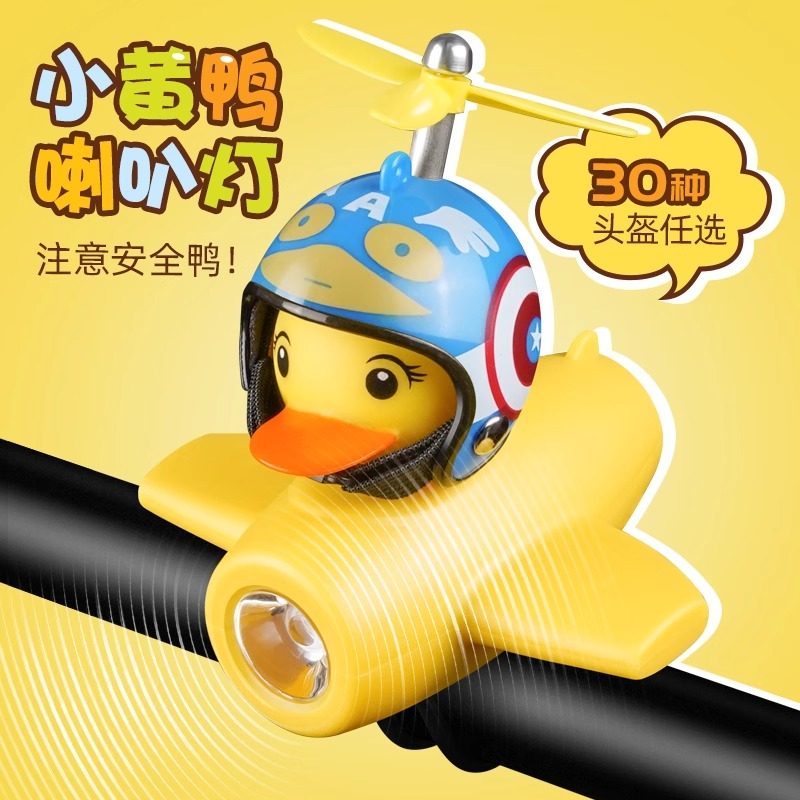 儿童自行车夜骑前灯平衡车小鸭子铃铛破风黄鸭喇叭山地车骑行装备