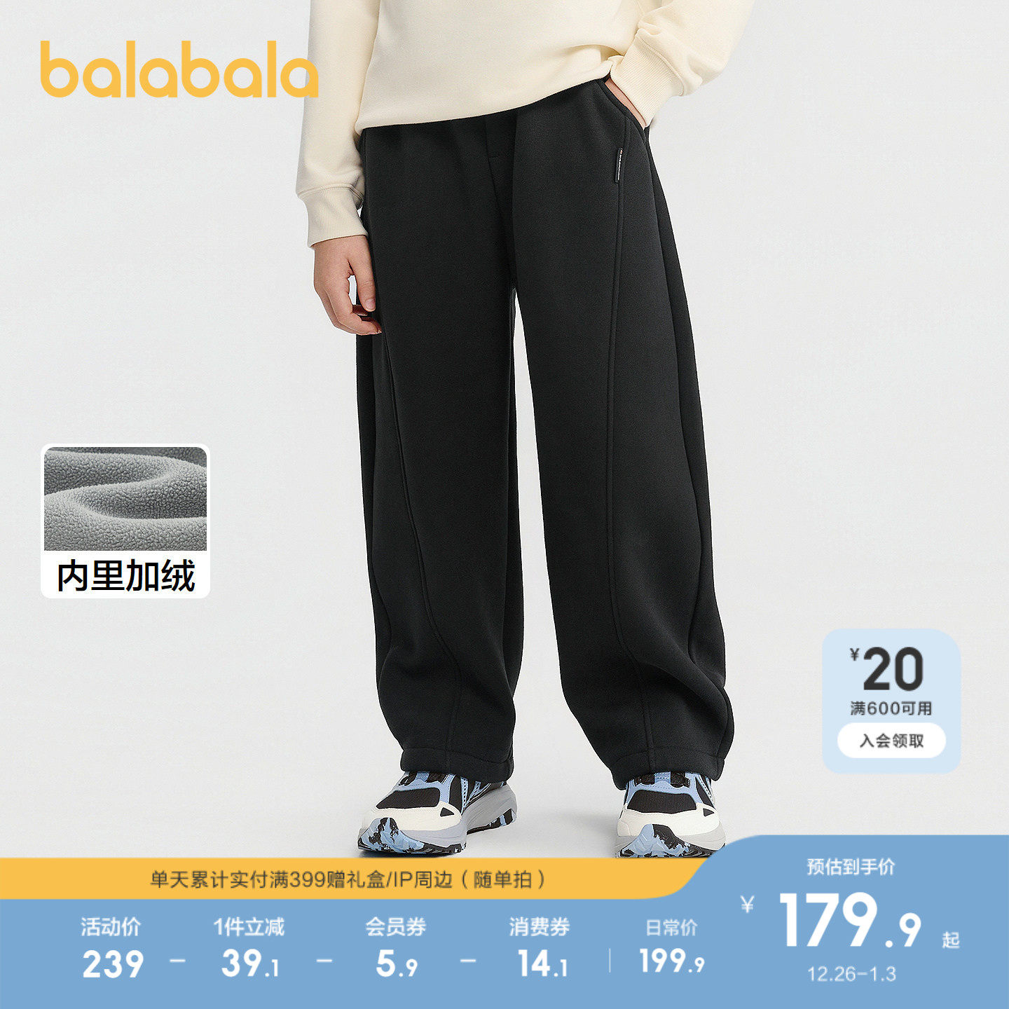 【商场同款】巴拉巴拉童装儿童裤子男童长裤2025冬新款加绒弯刀裤