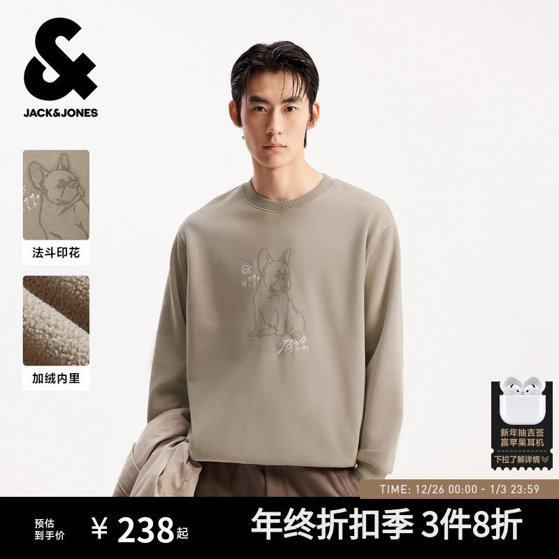 【加绒】杰克琼斯男装2025年秋季新款法斗犬印花宽松卫衣外套刺绣
