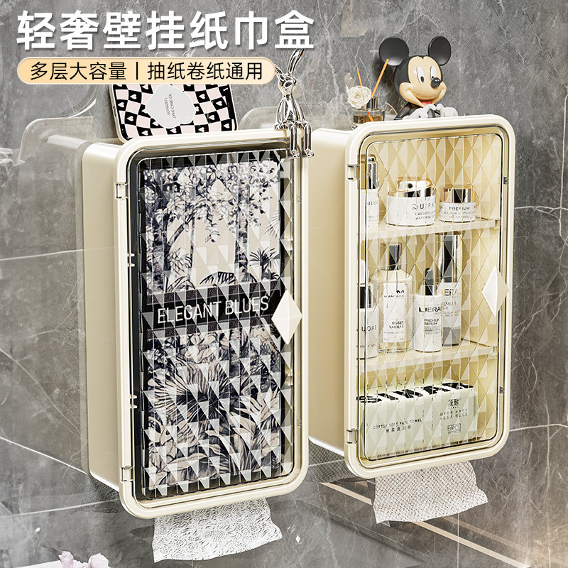 轻奢洗脸巾收纳盒纸巾盒壁挂式厨房卫生间厕所浴室倒挂抽纸盒透明