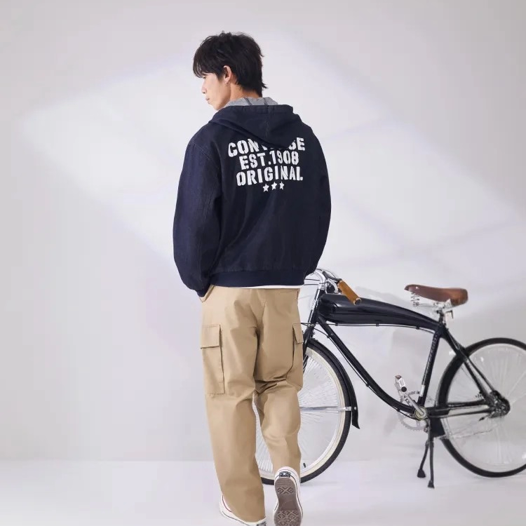 Converse匡威26春季新品连帽印花宽松牛仔夹克男外套 MCJ411-UHD
