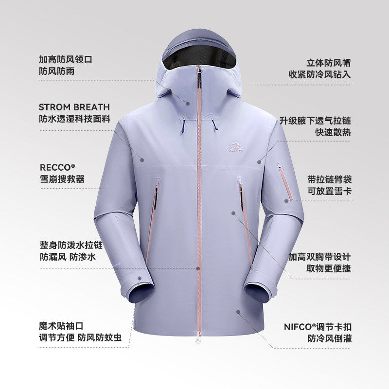 升级RECCO搜救器 腋下拉链 防风防暴雨硬壳