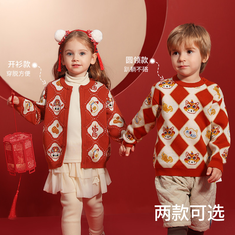 贝肽斯男女童毛衣加厚针织衫2025款儿童秋冬上衣宝宝纯棉新年毛衣