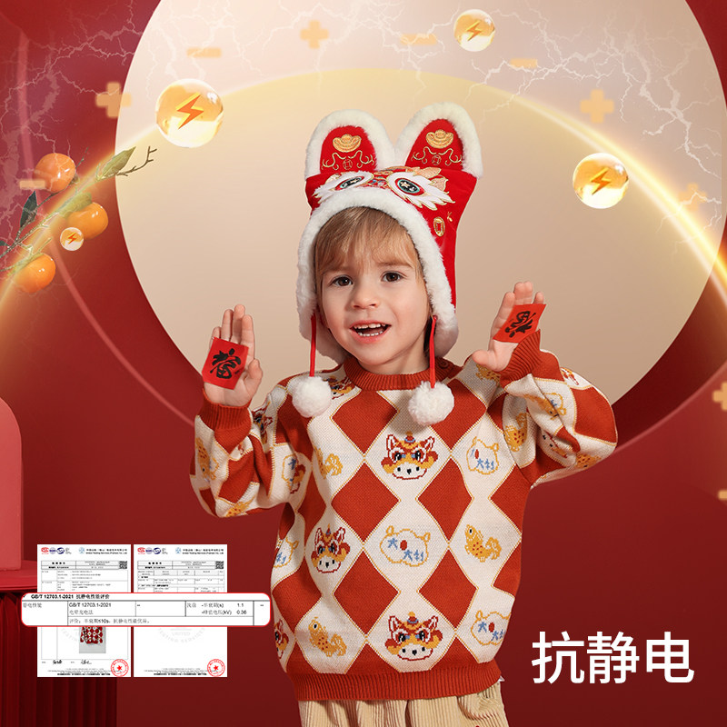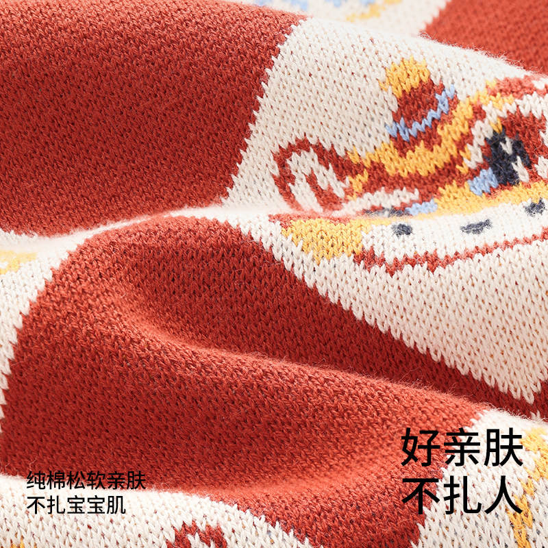 [骏马福裳]齐齐熊男童毛衣开衫冬装新年红色加厚宝宝毛线外套上衣