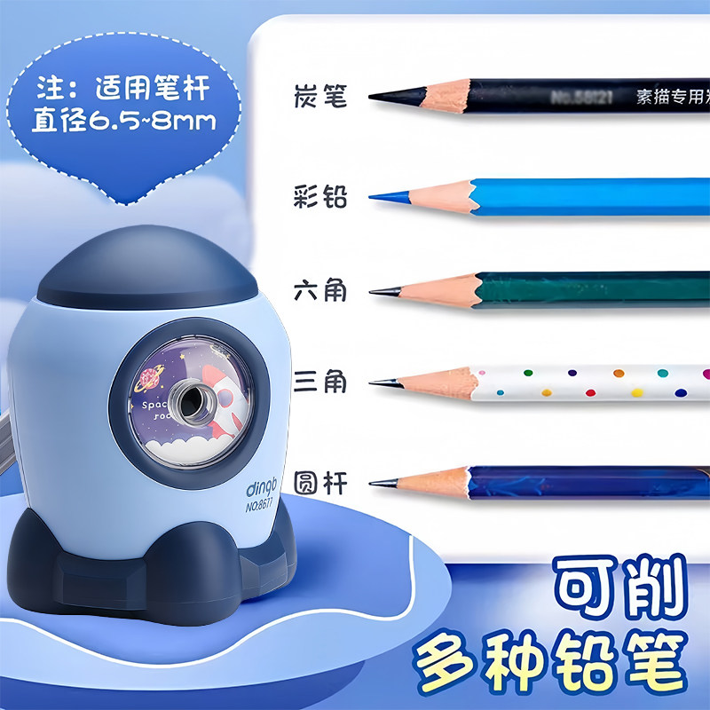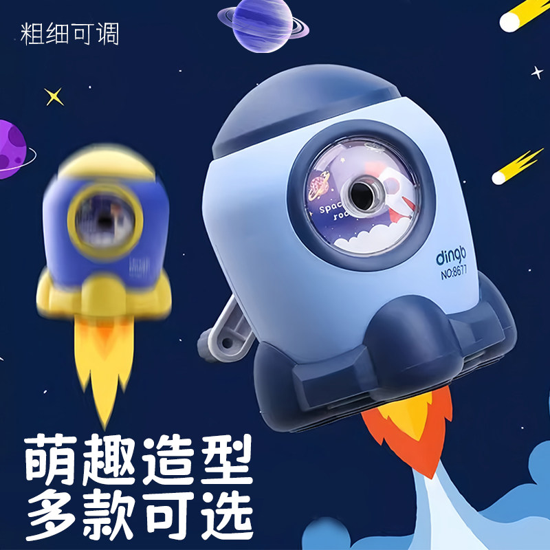 卡通小火箭可调节削笔器小学生专用自动进铅男孩幼儿园可爱造型削笔刀女孩便携式手动削铅笔刀刨笔器儿童文具