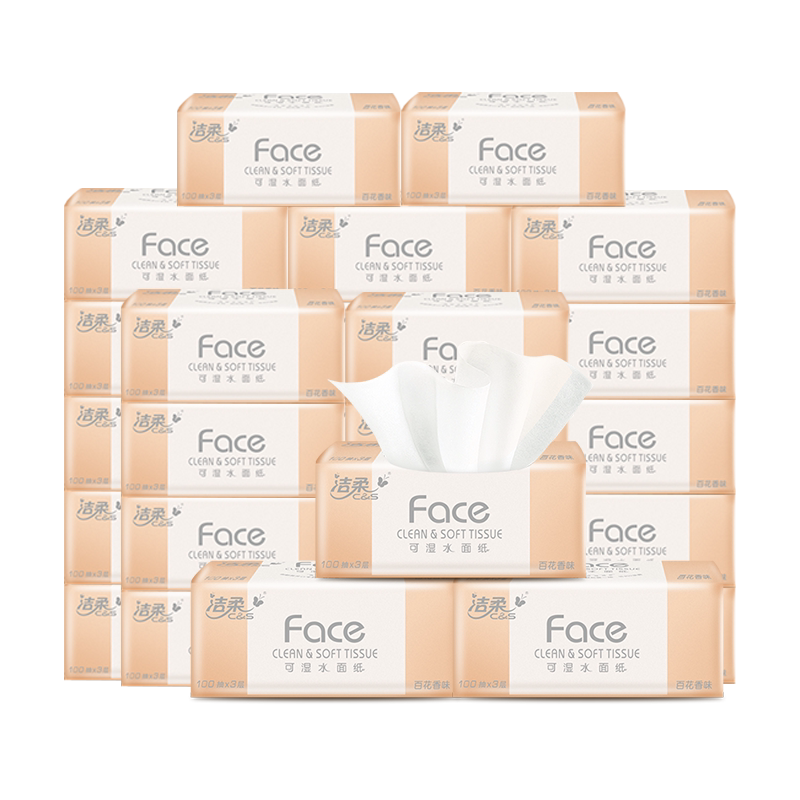 洁柔抽纸百花香可湿水抽纸纸巾纸抽卫生纸餐巾纸家用实惠装面巾纸
