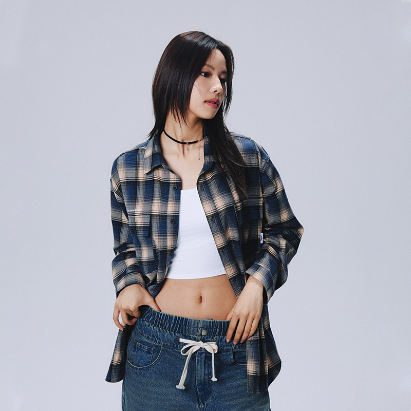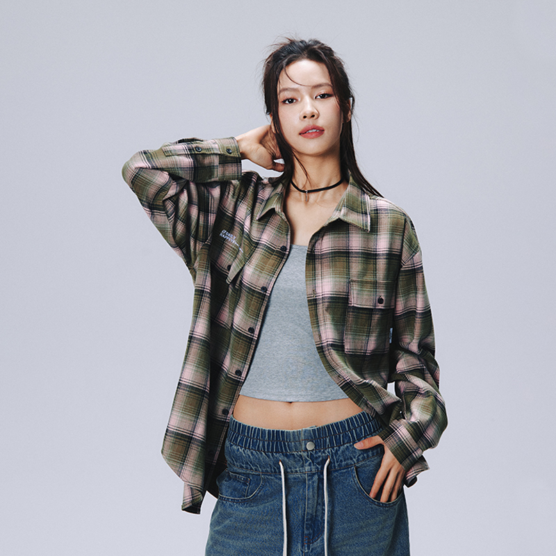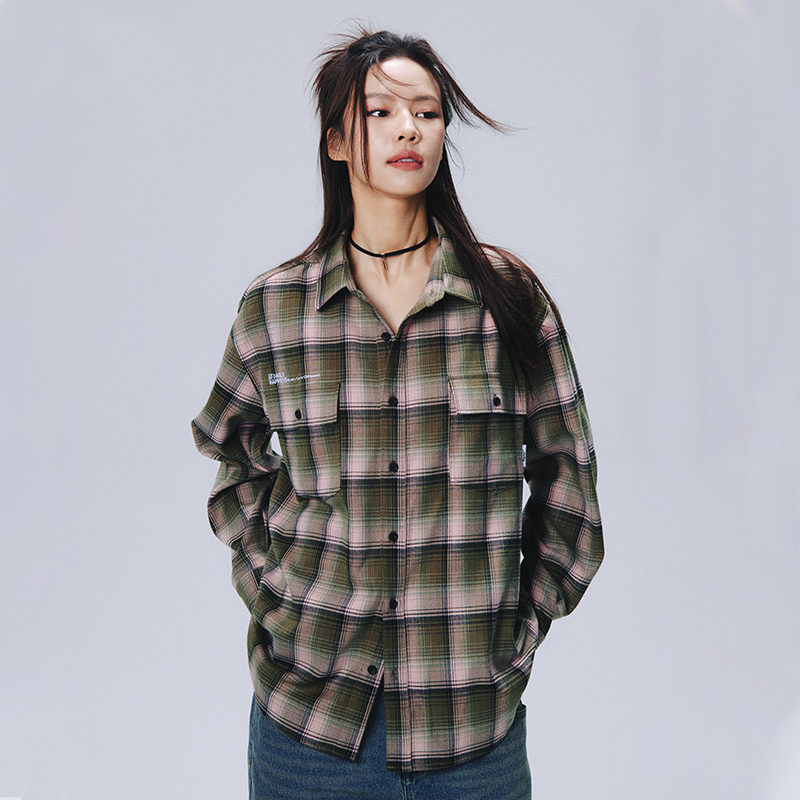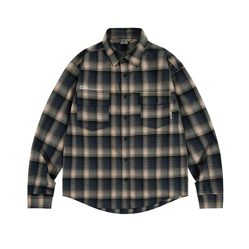 RAPPEYE口袋字母衬衫春秋新款日系复古情侣高级感格子衬衣外套潮