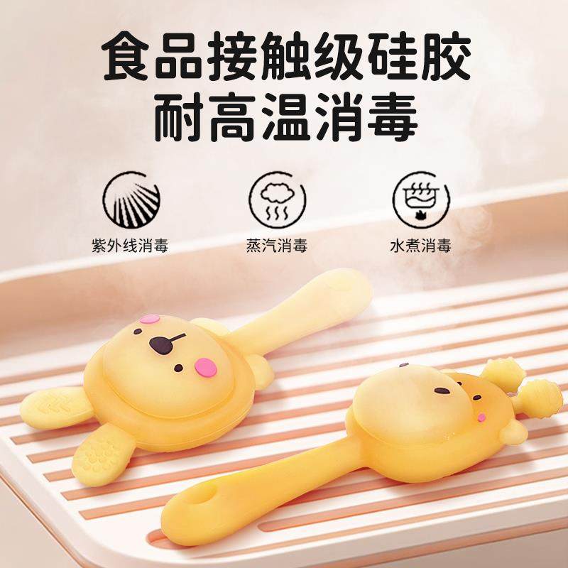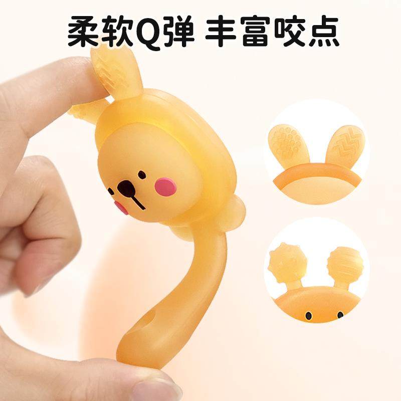 婴儿可啃咬摇铃玩具硅胶牙胶0-1岁小月龄手抓握训练磨牙棒防吃手