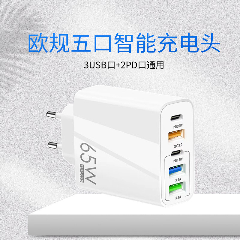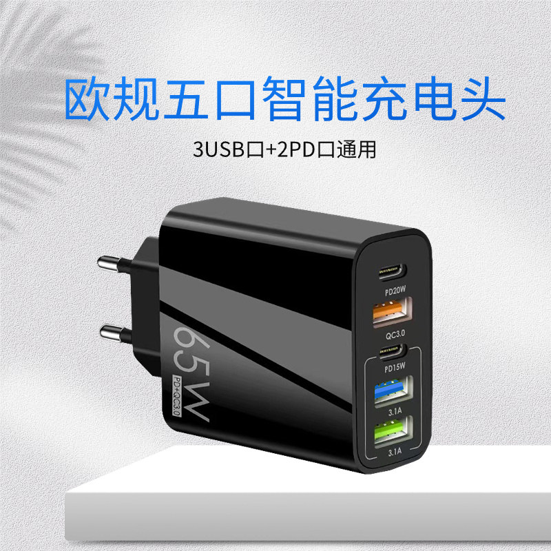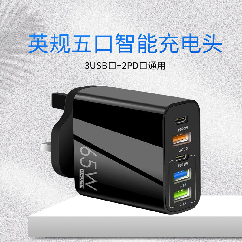 65W充电器英规港版三角插手机充电头适用华为苹果14/15pro魅族三星美规110v快充USB英标type-c多插口
