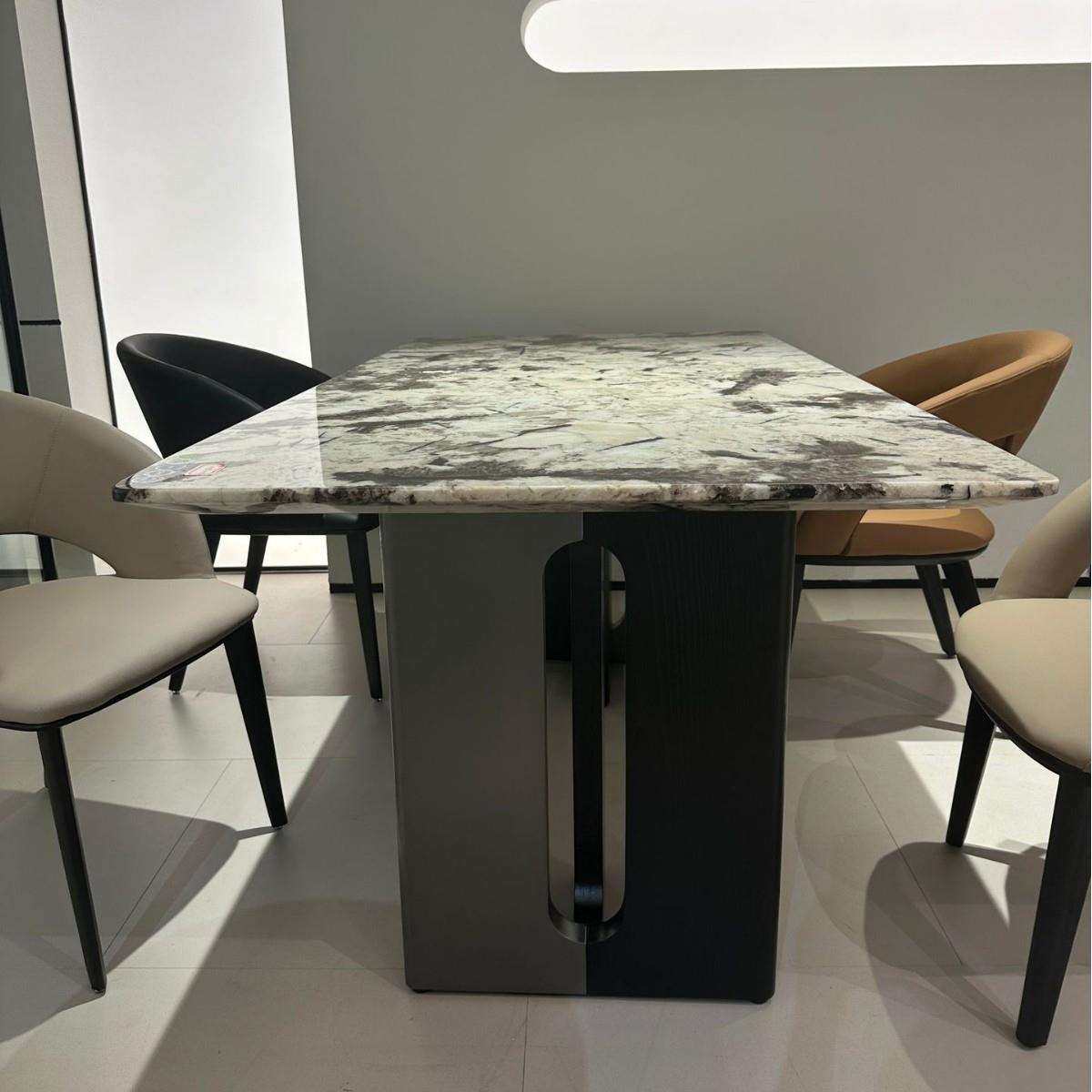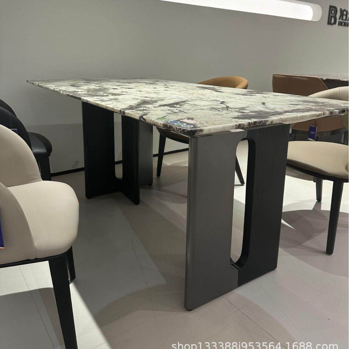 进口雪山兰蓝雪山飞狐奢石餐桌天然大理石银狐长方形大平层别墅