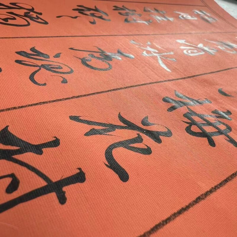 加厚蜡染绢纹格子长卷半生半熟毛笔字书法砖红色深仿古临帖创作纸