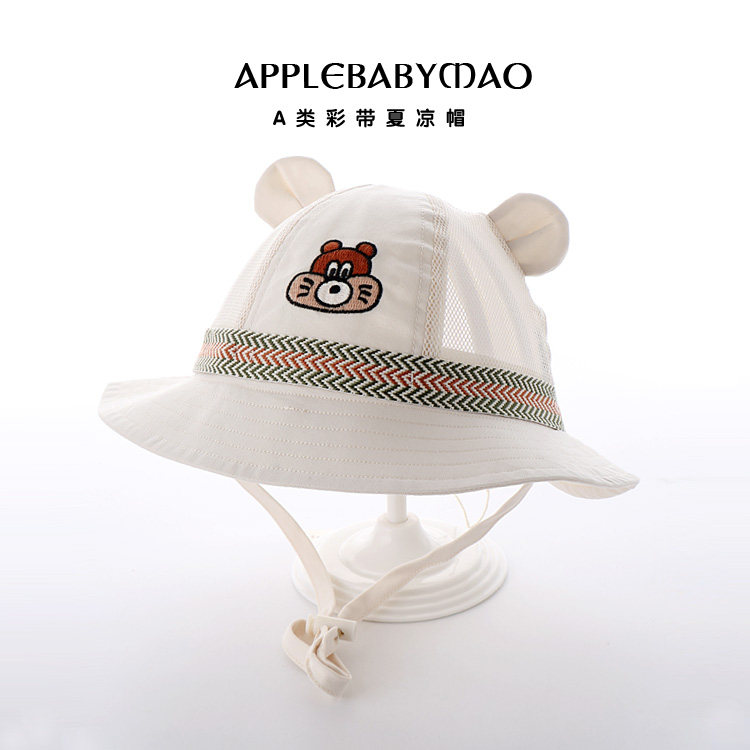木然良品彩带夏凉帽男女宝宝帽子婴幼儿童可爱卡通渔夫帽百搭透气