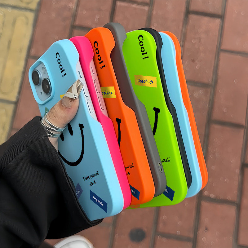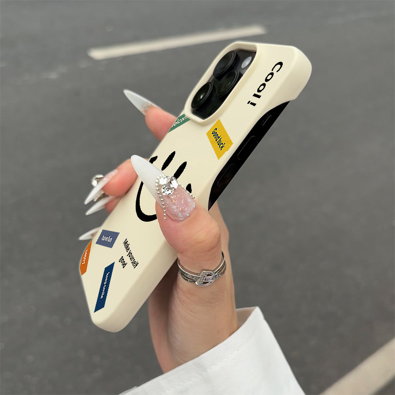 个性笑脸英文适用苹果16promax手机壳iPhone14pro新款13简约12简约11保护套15promax半包超薄xr软壳xsmax男潮