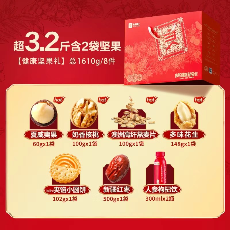 良品铺子健康坚果礼盒超3.2斤1610g夏威夷果核桃年货春节送礼团购