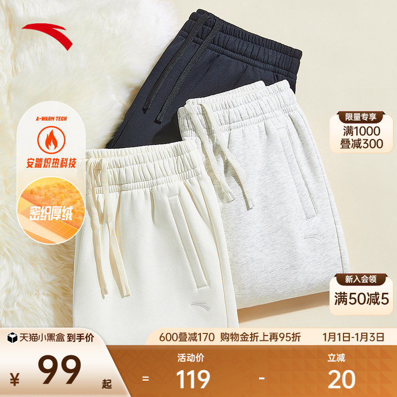 安踏奶芙裤丨卫裤冬季加绒女裤新款针织运动裤宽松束脚裤休闲长裤