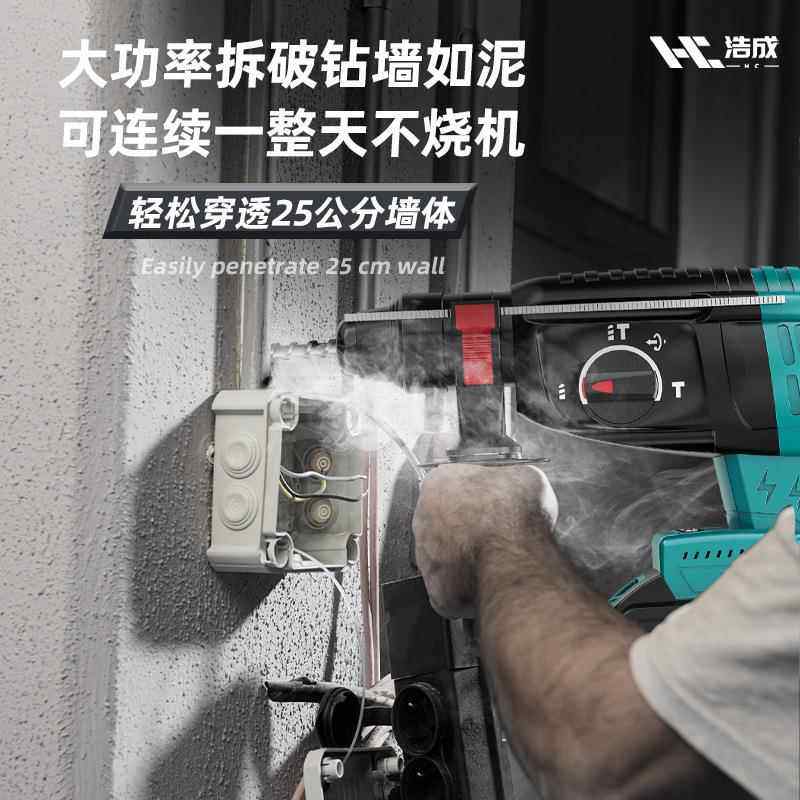 浩成无刷电锤三功能锂电冲击钻工业重型混凝土无线充电电锤电镐