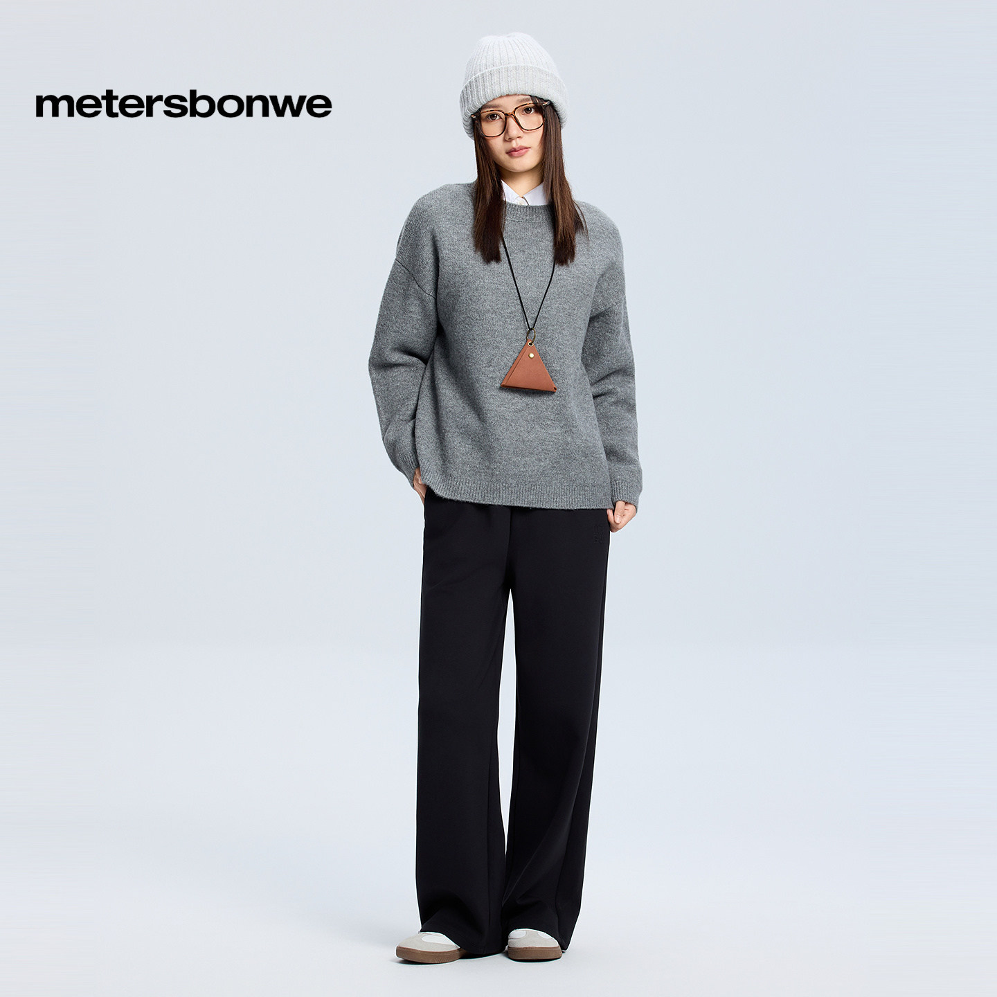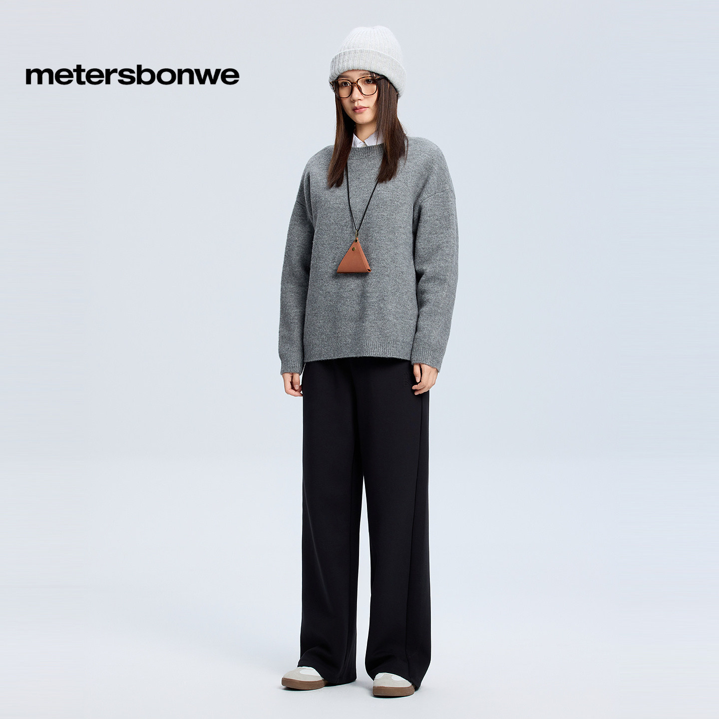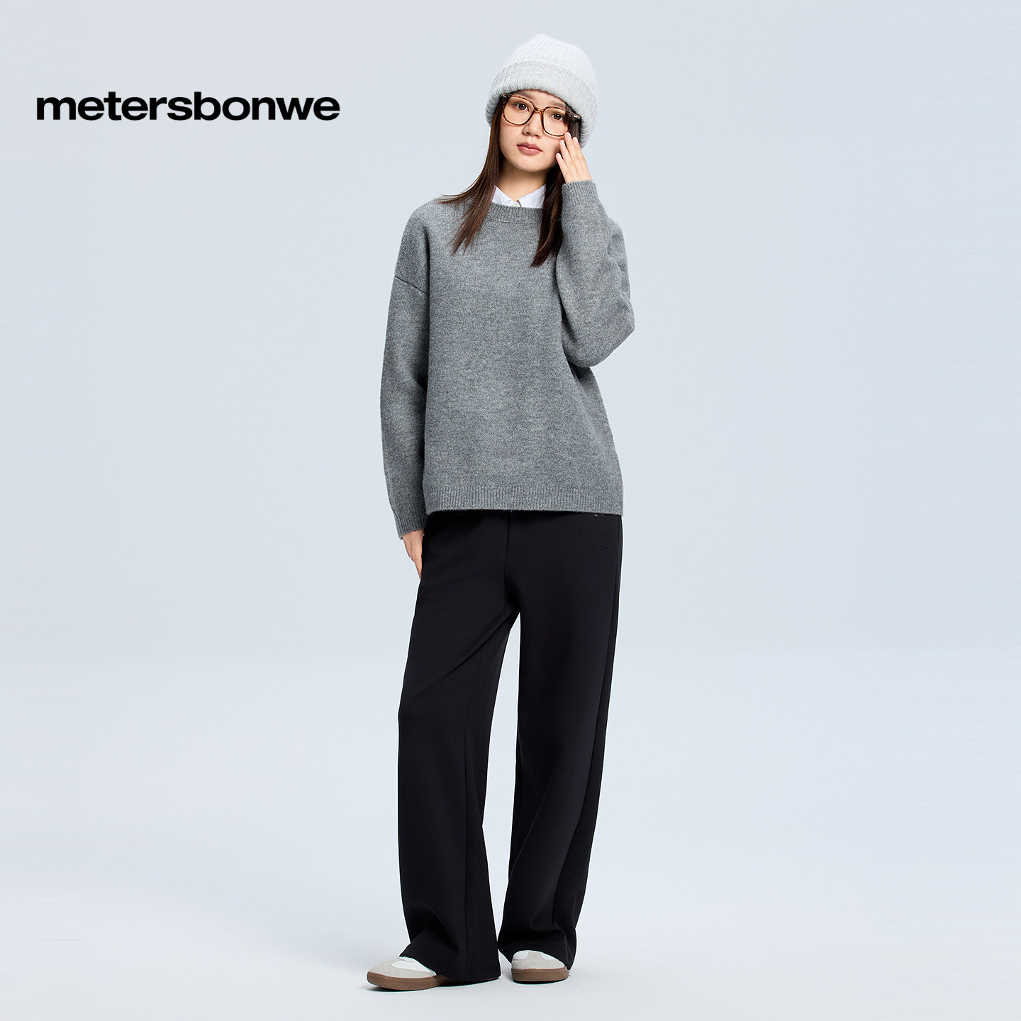 美特斯邦威毛衫女冬季新款潮流花纱舒适保暖纯色长袖毛衣