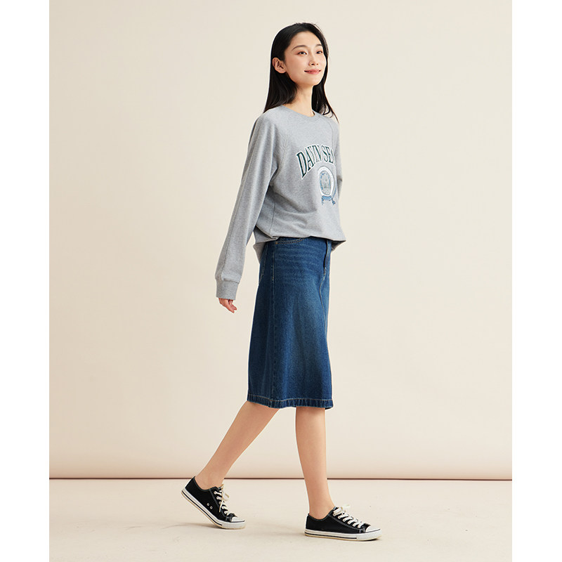 商场同款森马半身裙女磨毛纯棉长裙2025秋新款纯色伞裙百搭20002