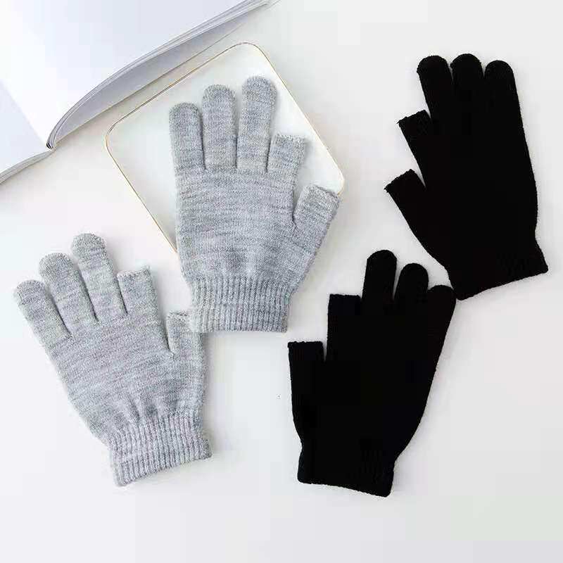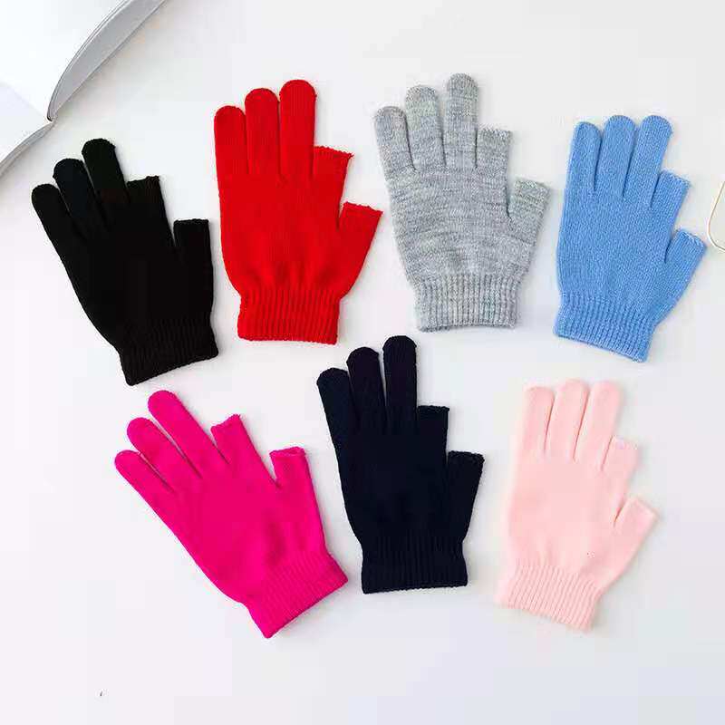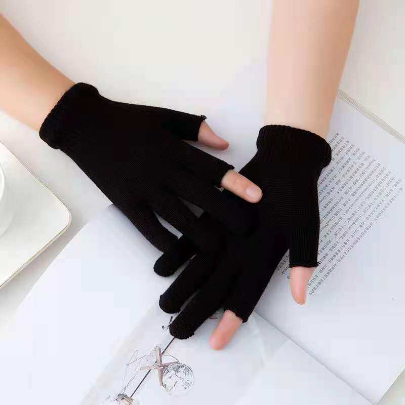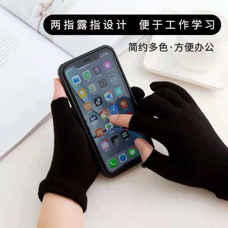 秋冬季纯色半指保暖手套成人学生办公御寒骑车韩版毛线针织手套