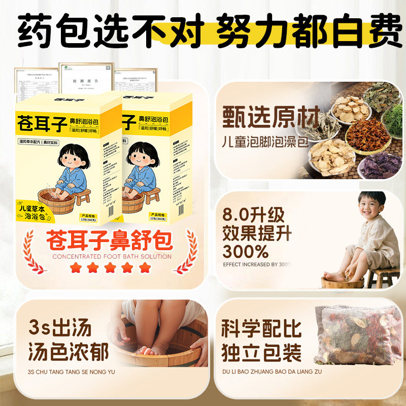 苍耳子儿童泡脚药包鼻塞鼻涕通鼻紫苏艾叶宝宝小儿足浴药浴包