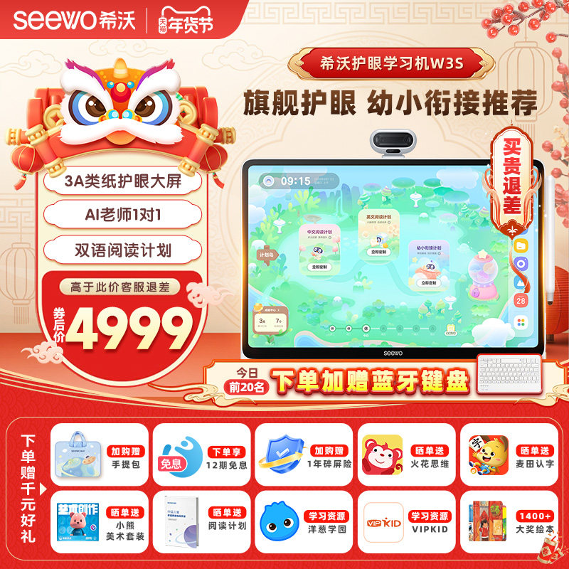 【爆款护眼】seewo希沃学习机W3S 标准版/高思版大屏护眼小学初中高中儿童启蒙平板AI早教机英语学习官方旗舰