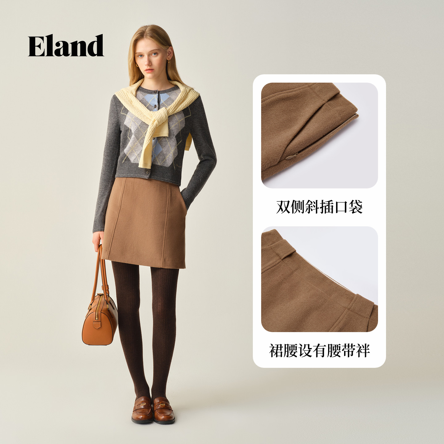 Eland衣恋半身裙女简约通勤纯色加厚直筒短裙2025冬季新款