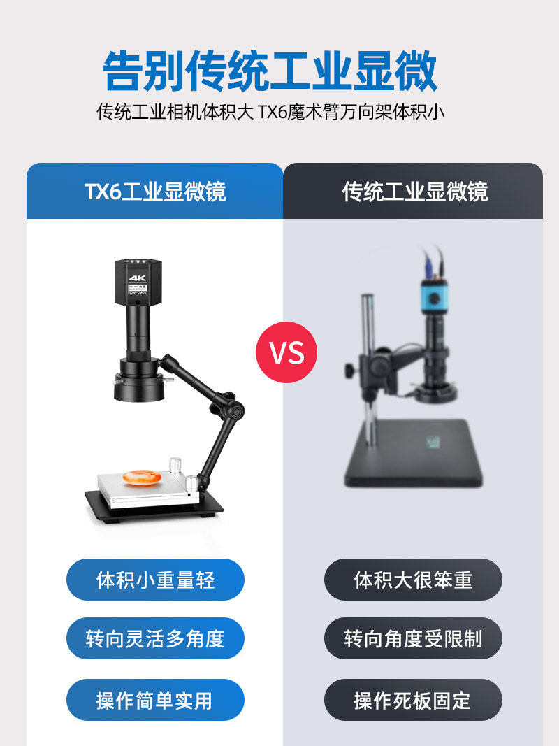 超眼TX06hdmi便携4K高倍2000倍工业相机万向支架电子数码显微镜台式放大镜线路板手机器视觉点胶机维修检测量