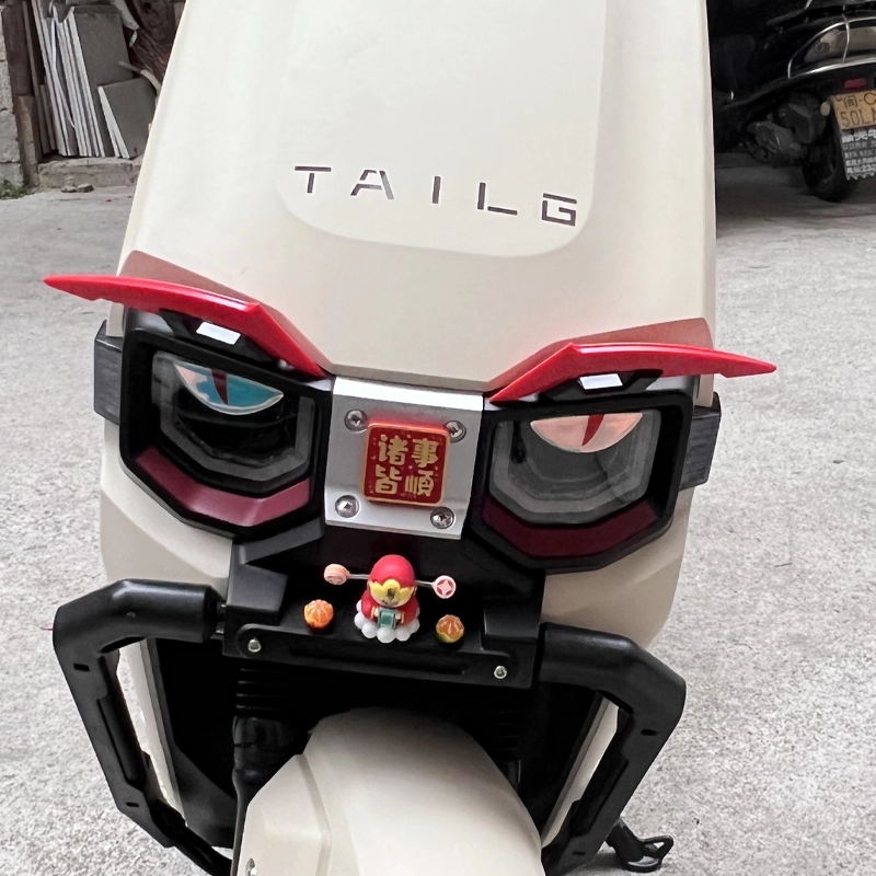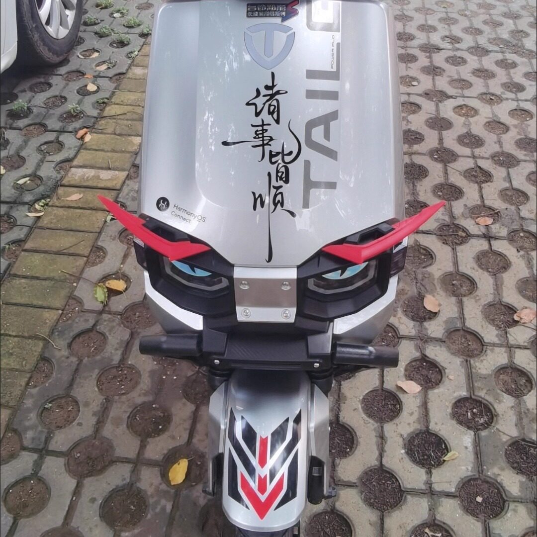 适用台铃火眼机甲·赤兔车头灯眉定风翼装饰国风平安喜乐立体贴纸