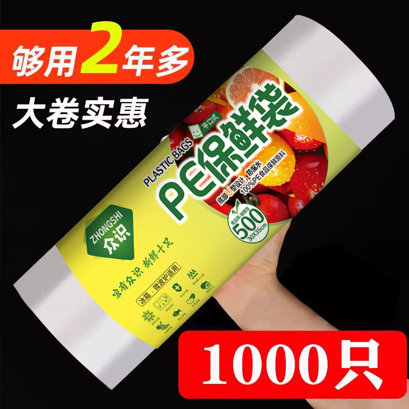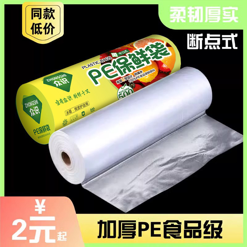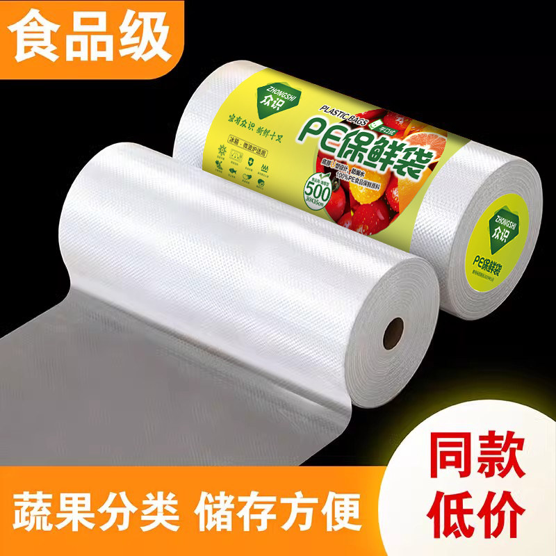 保鲜袋食品袋冰箱手撕袋加厚家用商品密封连卷收纳真空纹路新鲜